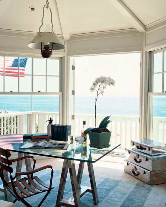 Tyylikäs meren rannalla Santa Barbarassa sijaitseva talo on sisustettu mukavaksi viikonloppukodiksi. Värimaailma, patinoituneet puupinnat, materiaalivalinnat ja sisustustavarat tuovat sisustukseen näköalojen lisäksi merellistä tunnelmaa.